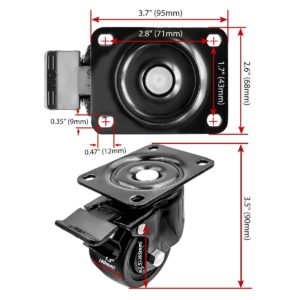 4 Pack 3 Inch All Black Metal Swivel Wheel No Brake