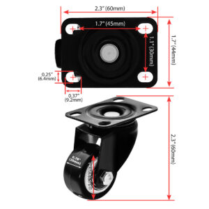 4 Pack 2 Inch All Black Metal Swivel Caster Wheel No Brake