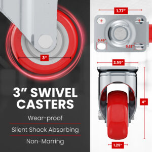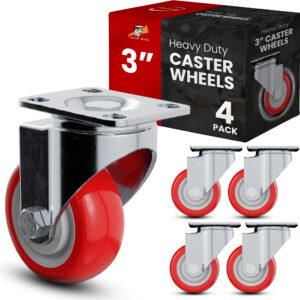 4 Pack 3 inch Red PU Swivel Caster No Brake