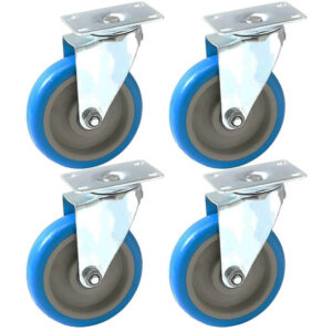 4 Pack 5 inch Blue PU Swivel Stem Caster With Front Brake