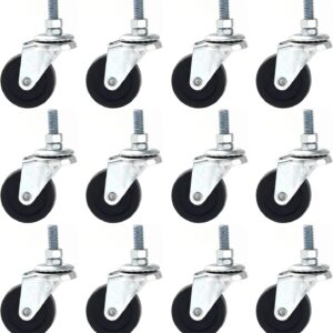 12 Pack 3 Inch Rubber Base Swivel Caster Wheels No Brake