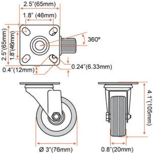 4 Pack 3 Inch All Black Metal Swivel Wheel With Brake