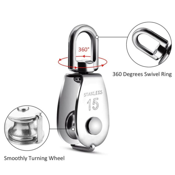 - FEATURE: Safe; strong load bearing; high hardness, difficult to deform; water repellent; 360 degree swivel top ring for ease rope handling, Prevent rope from knotting, convenient to use, smooth roller provides great rope traverse.