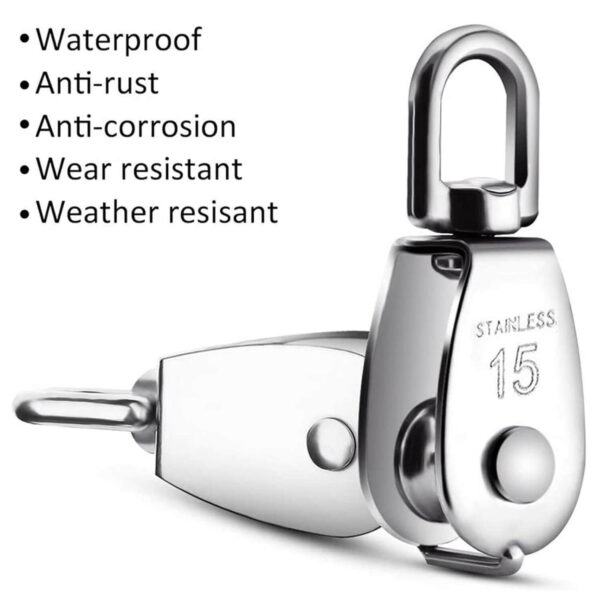 1 Piece M15 Single Pulley Block Wire Rope Hanging Wire Towing Wheel – 304 Stainless Steel Lock