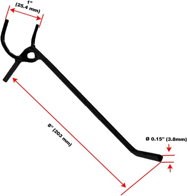 - Universal Fit: hooks fit all types of 1/4″ and 1/8″ pegboards with 1″ spacing