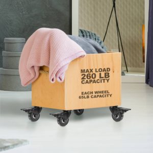 DUAL LOCKING BRAKE: The total locking brake locks both the wheel and the swivel. ROTATE: 360 degrees. Smooth and Silent and Sturdy. Capacity: 65lbs each.