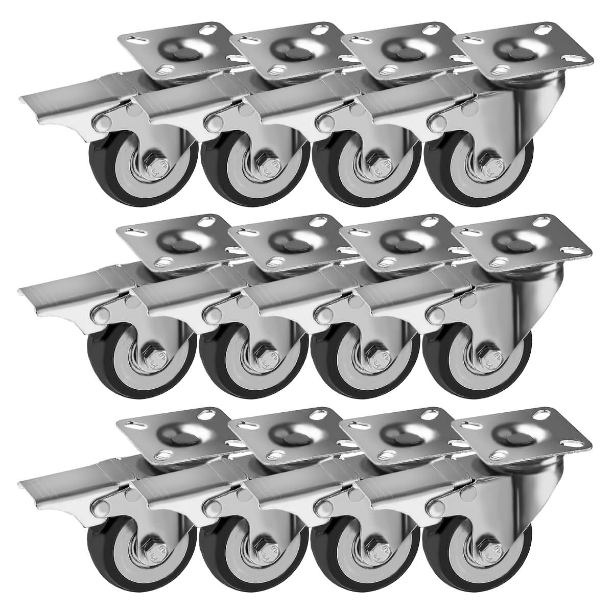 12 Pack 2 inch Black PU Swivel Caster With Brake