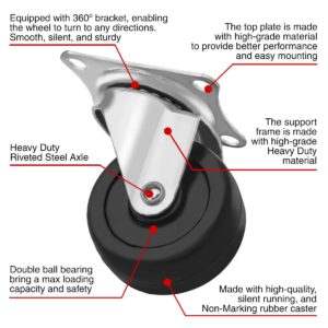 SWIVEL CASTERS ROTATE 360 DEGREE: Transform the mating equipment to any directions in the most efficient and labor-saving way, our caster wheels are the best accessories for the medium furniture, desktop, table, cabinet or trolley.