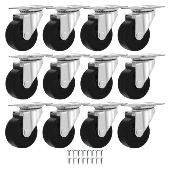 12 Pack 2 Inch Hard Rubber Base Swivel Caster Wheels No Brake With Hardware