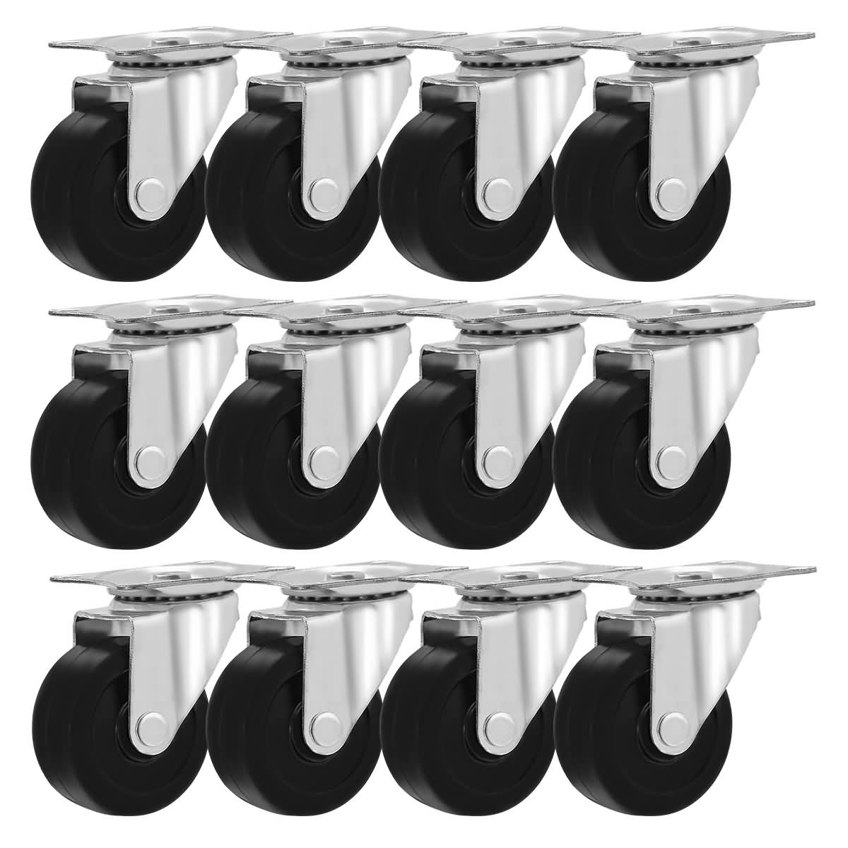 12 Pack 2 Inch Hard Rubber Base Swivel Caster Wheels No Brake