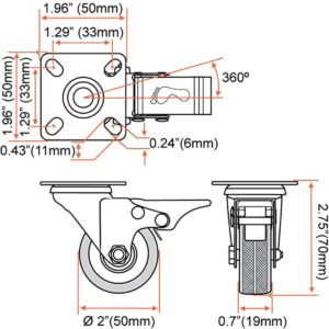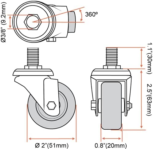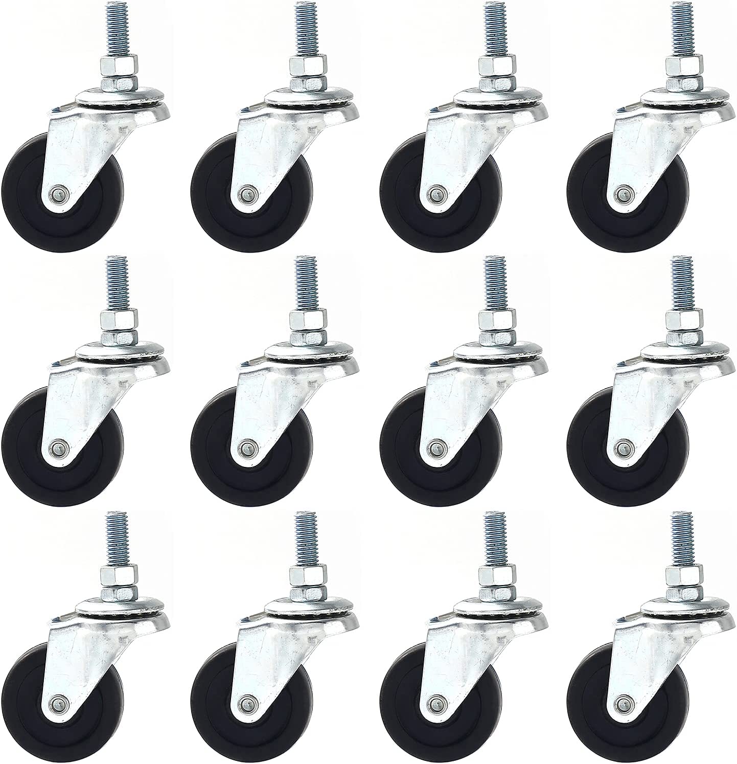 12 Pieces 2 Inch Hard Rubber 1/2″ Tall Threaded Stem Swivel Caster No Brake