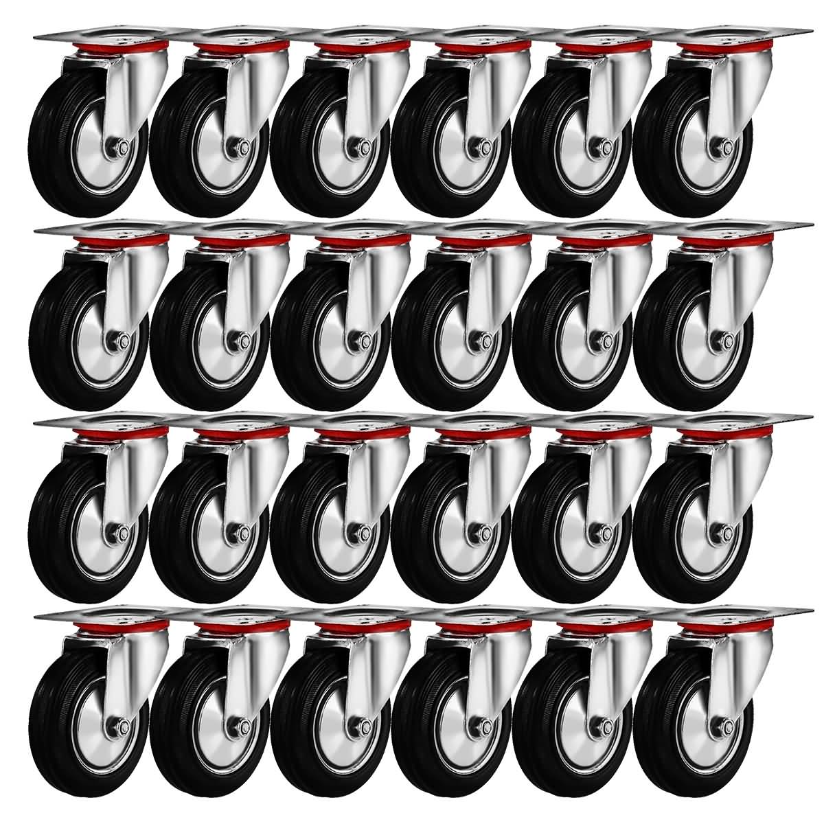 24 Pack 3 Inch Rubber Base Swivel Caster Wheels No Brake