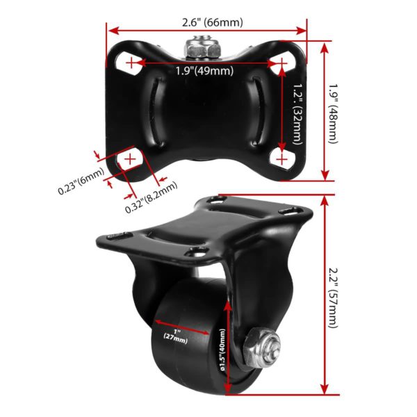 - Caster Wheel Diameter: 50mm , 1.5″(40mm)