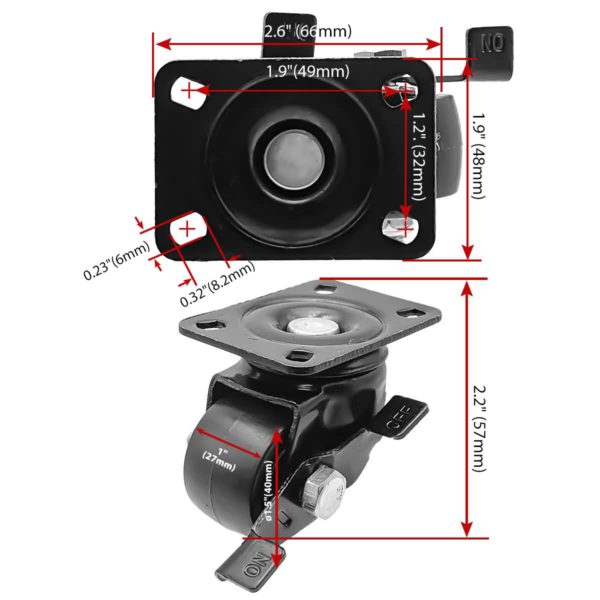 - Caster Wheel Diameter: 50mm , 1.5″(40mm)