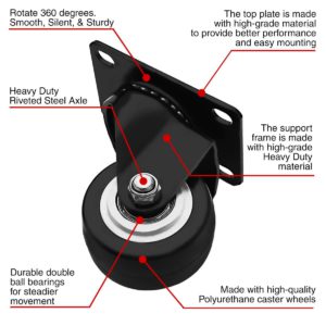 SMALL & STRONG, SUPER LOAD-BEARING: The Caster wheels swivel made of the popular Non-Marking polyurethane rubber type, very quiet running, absorbs shock and vibrations. Saving of time and labour. These powerful caster wheels can be used for a multitude of small or big projects.