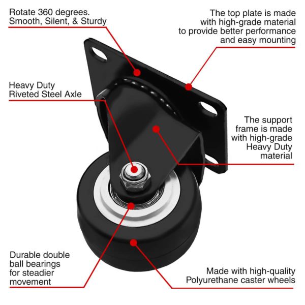 - Caster Wheel Diameter: 2.5″ (63.5mm)