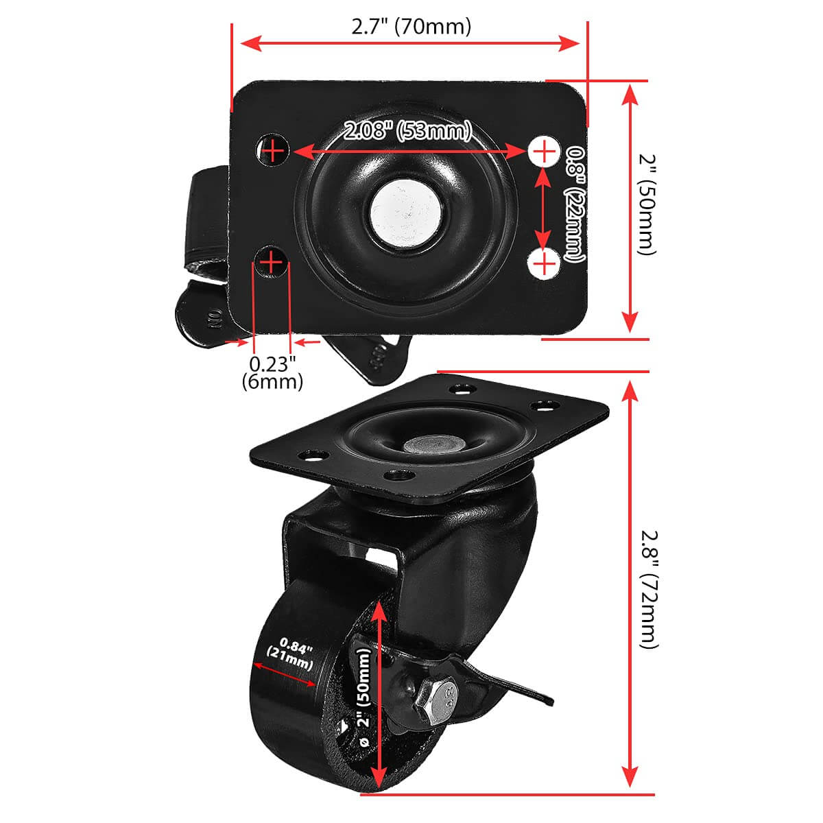 - Hole center to hole center: 0.8″ (22mm) x 2.08″ (53mm)