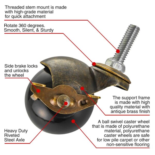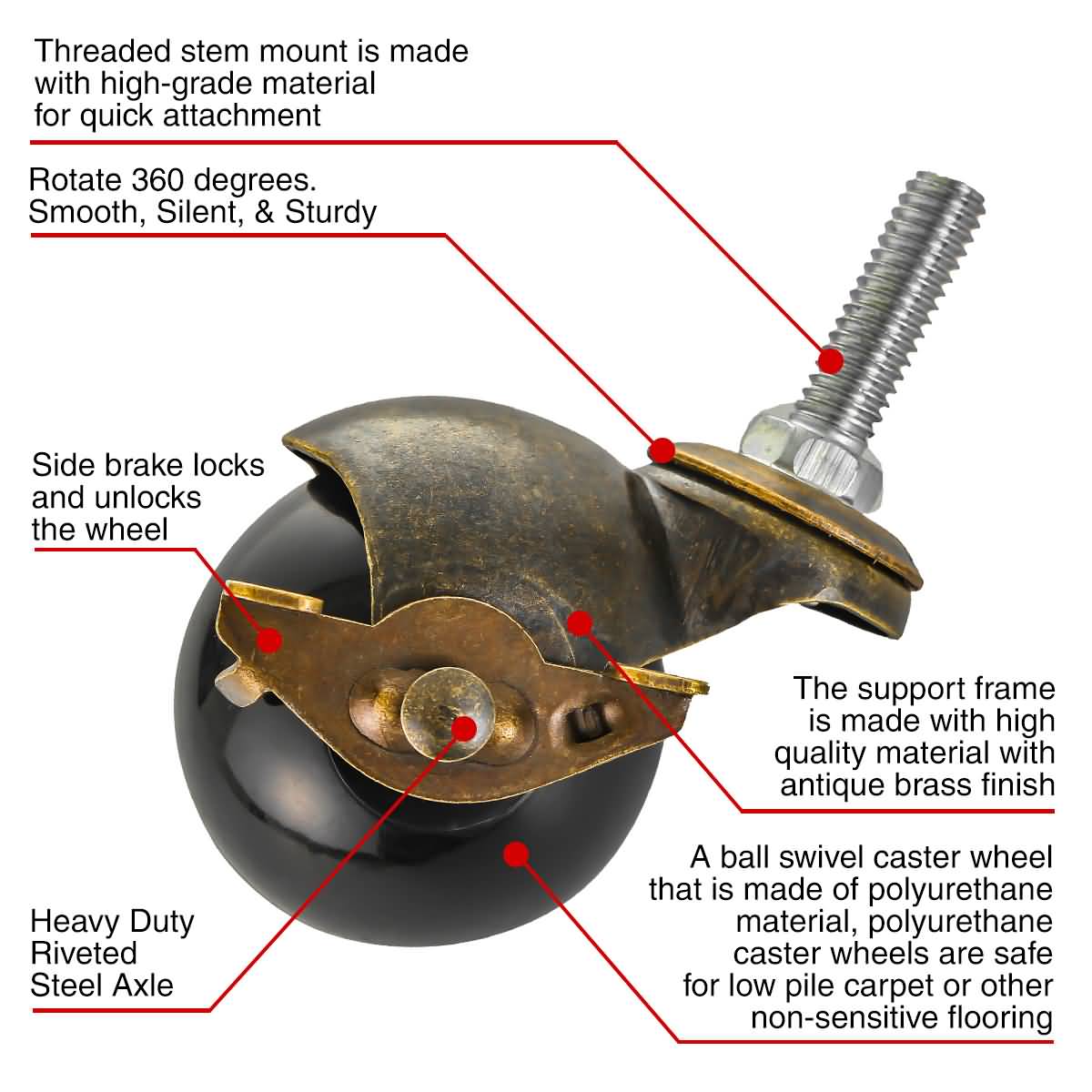 PROTECT HARDWOOD FLOORS: Don’t worry ball casters for furniture to leave scratches on your hardwood floors. Vintage ball casters made of polyurethane materials, it rolls with little to no resistance no matter the flooring type and doesn’t make any odd sounds.