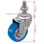 CASTER WHEEL SIZE: Caster Wheel Diameter: 50mm , 2″. Caster Wheel Width 19mm 0.7″. Overall Height: 2.75″ (70mm). Caster Wheel Color: Blue. Ball bearings: Double ball bearings.