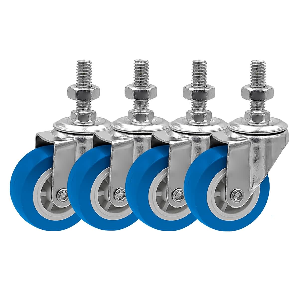 4 Pack 2 inch Blue PU Swivel Stem Caster No Brake