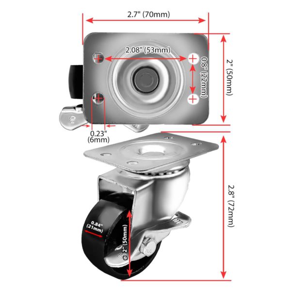 - Wheel Diameter: 2″” (50mm)