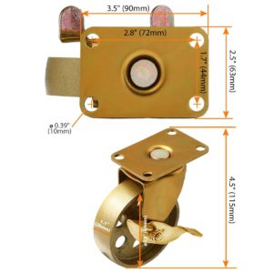 SIZE: Rotate 360 degrees. Capacity: 225lbs each, OVERALL HEIGHTS : 4.5″ (115mm). Mounting Hole Dimensions: 0.39″ (10mm).