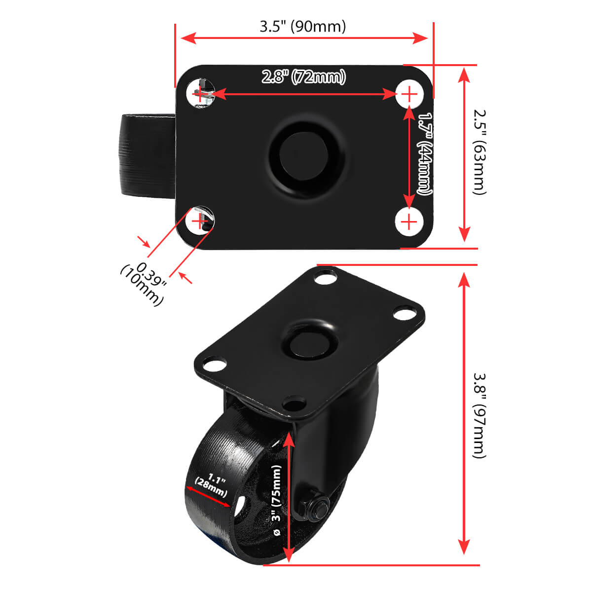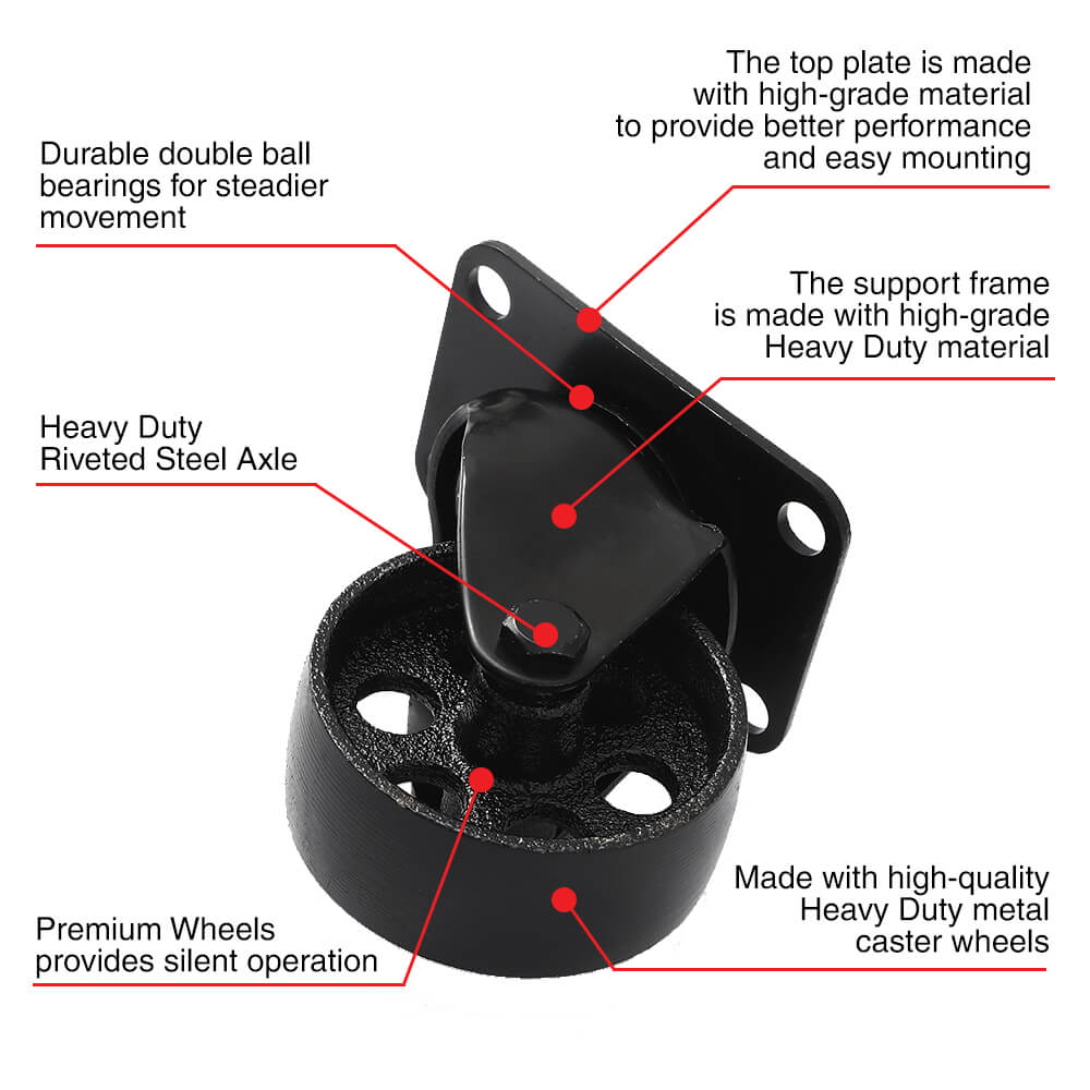 4 Pack 3 Inch All Black Metal Swivel Wheel No Brake