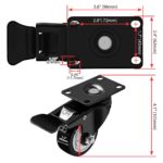 HEAVY DUTY CASTER WHEELS: Double ball bearing for each wheel, moving smooth, the load capacity for each casters is more than 300lbs. Plate Size: 3.6″ (96mm) x 2.4″ (62mm). Hole center to hole center: 1.7″ (45mm) x 2.8″( 72mm). Mounting hole dimensions: 0.33″ (8.4mm) x 0.46″ (11.7mm)). Overall Height: 4.1″ (105mm). Caster Wheel Diameter: 3″ (76mm). Caster Wheel Width: 1.2″ (30mm). Caster Wheel Material: Polyurethane. Caster Wheel Color: All Black.