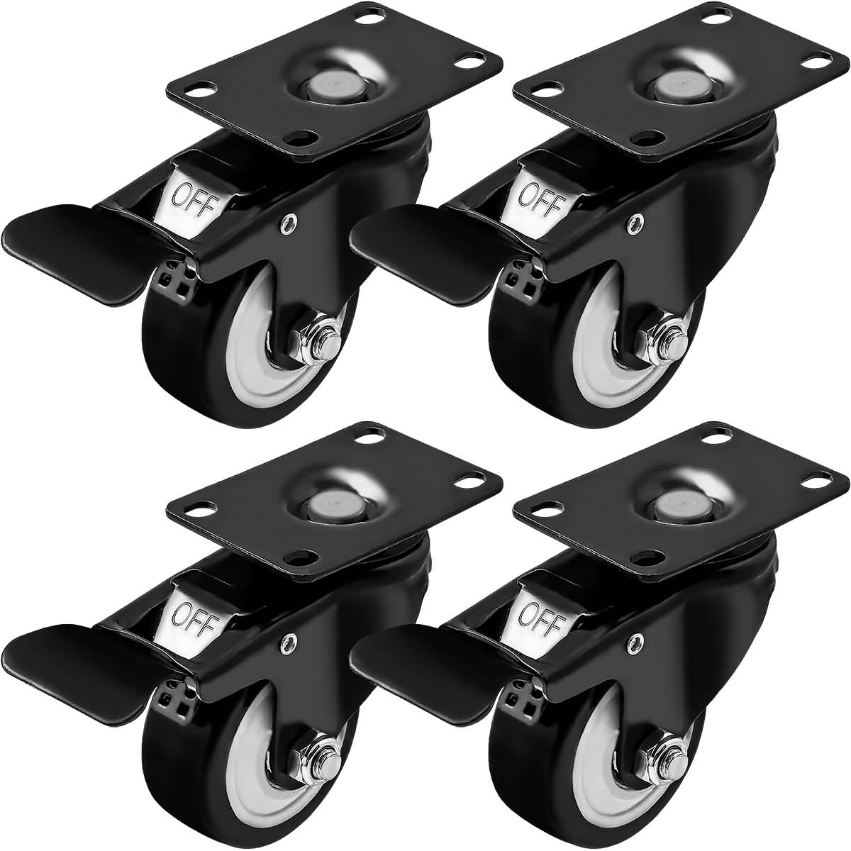 4 Pack 3 inch All Black PU Swivel Caster With Brake