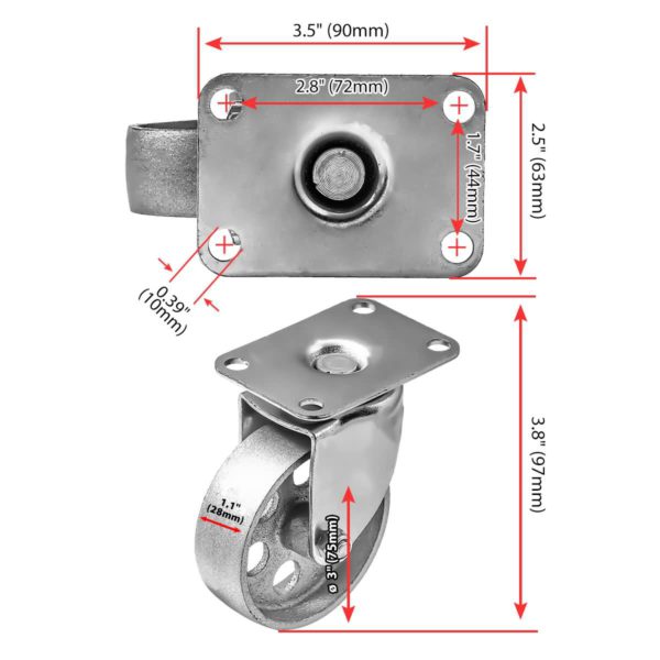 - Wheel Diameter: 3″ (75mm)
