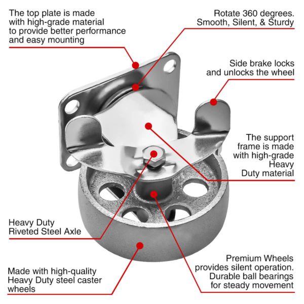 4 Pack 3 Inch All Grey Metal Swivel Wheel 2 No Brake & 2 With Brake