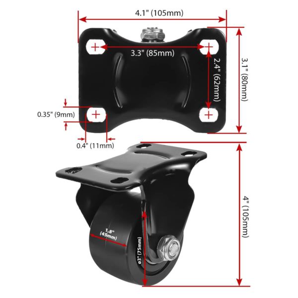 - Caster Wheel Width: 1.8″(45mm)