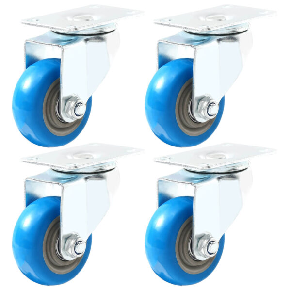 4 Pack 3 inch Blue PU Swivel Caster No Brake