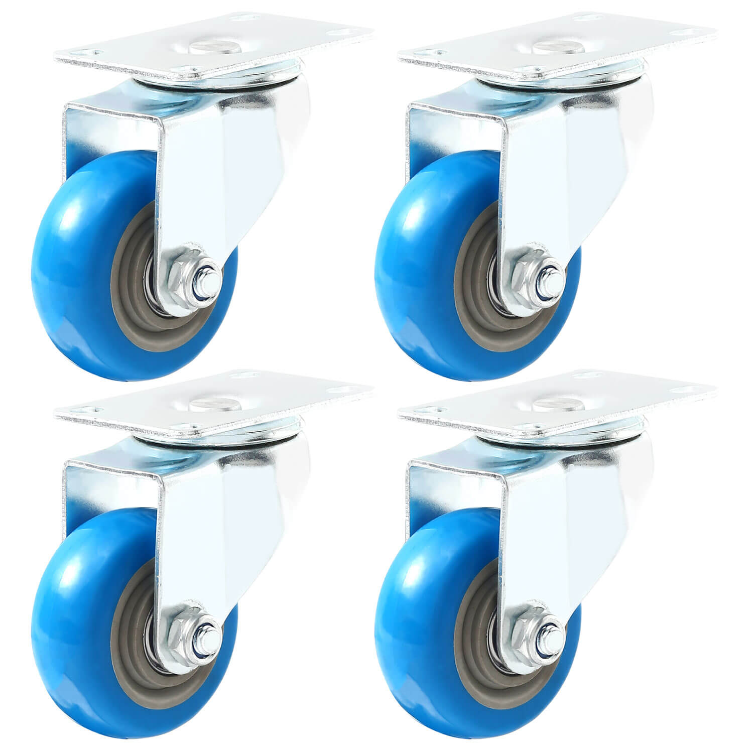 WHEEL MATERIALS AND PERFORMANCE: Heavy duty casters made of polyurethane wheels. COLOR: Blue. Ball bearings: Double ball bearings. Premium Caster wheels are made of high quality polyurethane wheels with strong abrasion resistance, silent shock absorber, wearproof, no drag marks and enhance the impact resistance of the whole caster.