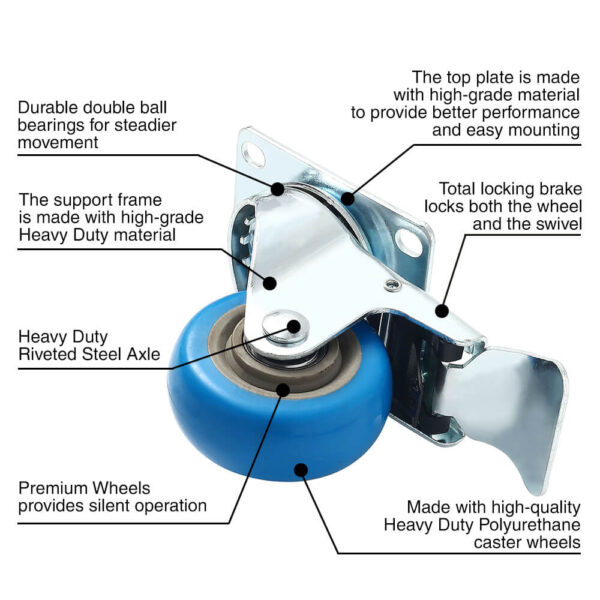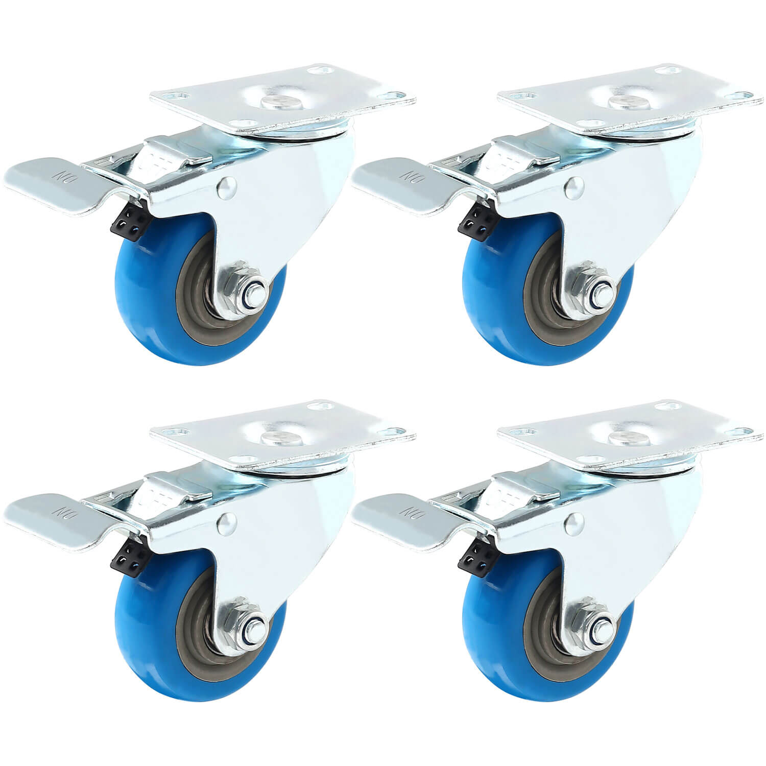 4 Pack 3 inch Blue PU Swivel Caster With Brake