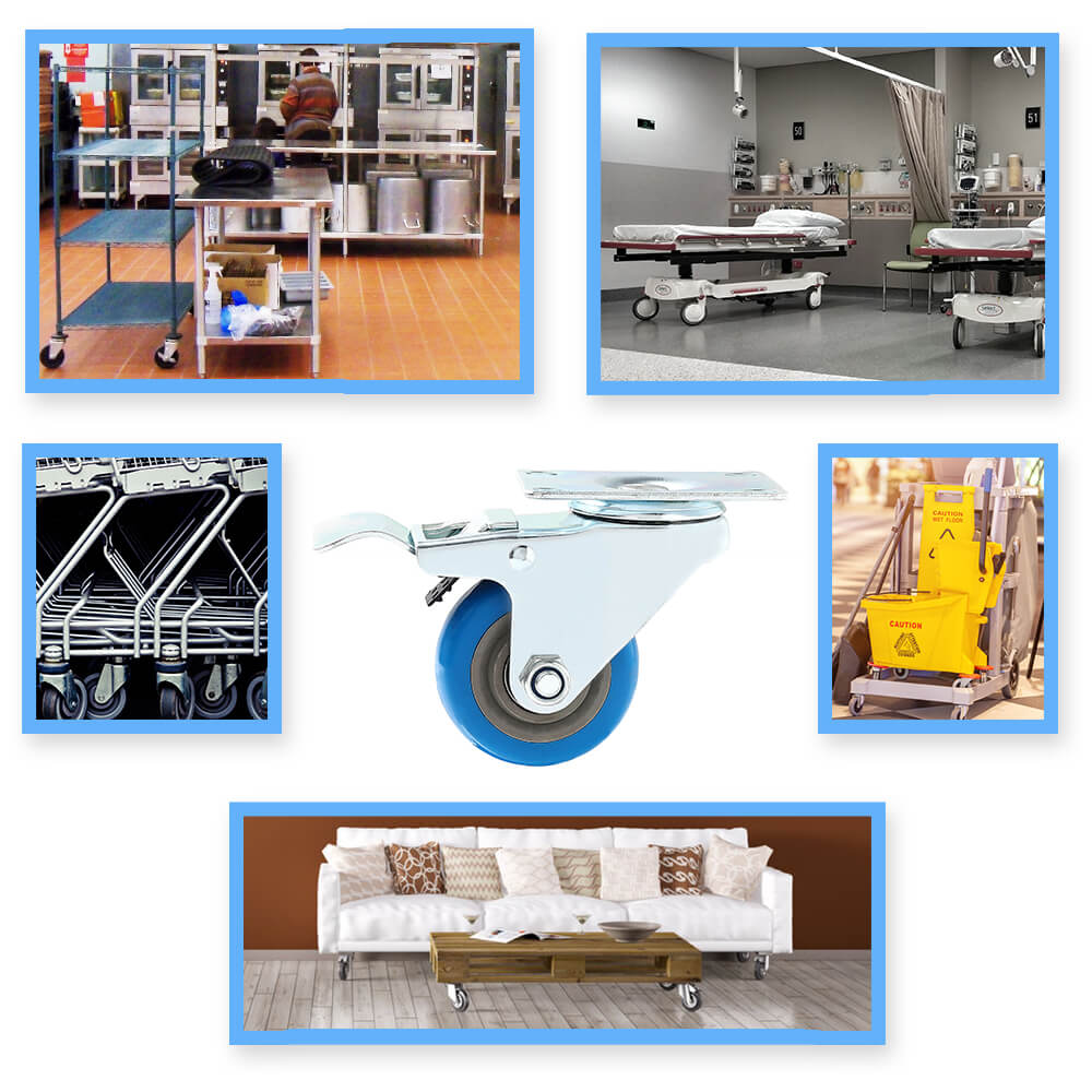 WHEEL MATERIALS AND PERFORMANCE: Heavy duty casters made of polyurethane wheels. COLOR: Black. Ball bearings: Double ball bearings. Premium Caster wheels are made of high quality polyurethane wheels with strong abrasion resistance, silent shock absorber, wearproof, no drag marks and enhance the impact resistance of the whole caster.