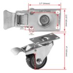 DUAL LOCKING BRAKE: Total locking brake locks both the wheel and the swivel. PLATE SIZE: 2.55″ (65mm) X 3.7″ (94mm). Hole Center To Hole Center: 1.77″ (45mm) X 2.95″ (75mm). Mounting hole dimensions: 0.32″ (8.3mm) x 0.46″ (11.9mm).