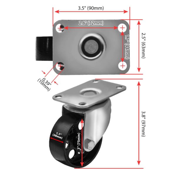 - Hole center to hole center: 1.7″ (44mm) x 2.8″ (72mm)