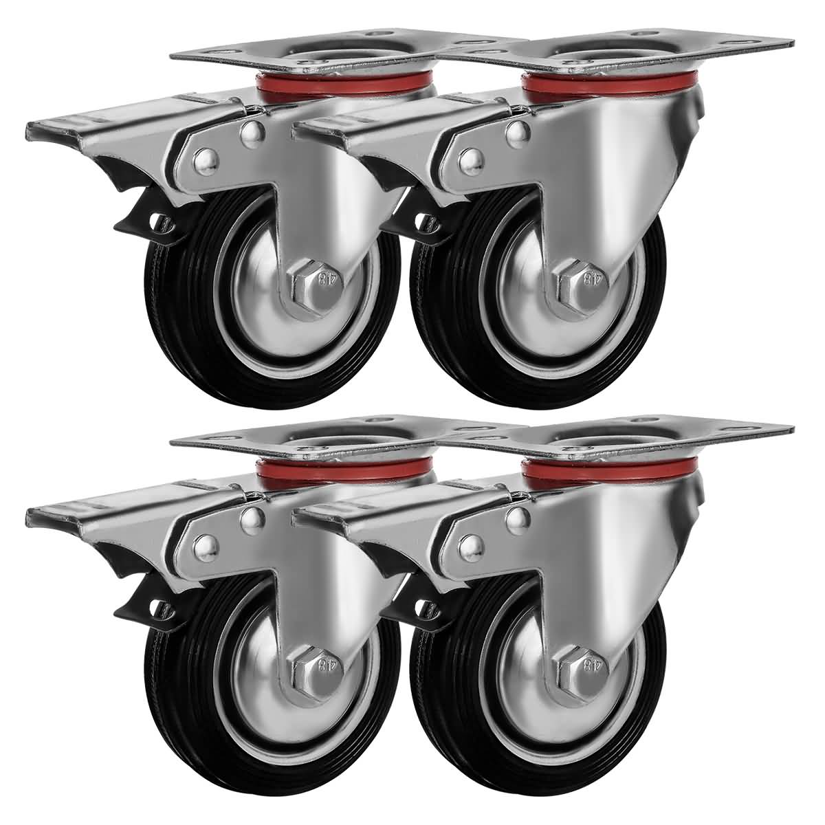 4 Pack 3 Inch Rubber Base Swivel Caster Wheels With Brake