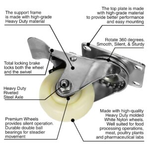 4 Pack 3 inch White Nylon Swivel Caster Brake With Hardware