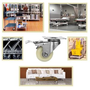 360-DEGREE MANEUVERABILITY: These molded from nylon caster wheels equiped with 360 degrees swivel bracket, the wheels can turn to any directions. Smooth and Silent and Sturdy. Capacity: 250lbs each wheel. Move the light furniture, table, cabinet and equipment to the destination more easily and flexibly.