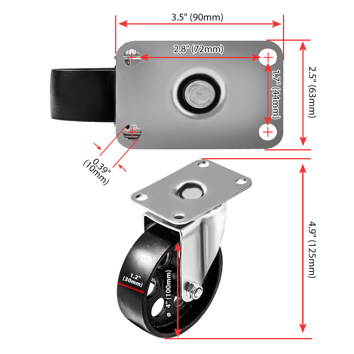 - Wheel Diameter: 4″ (100mm)