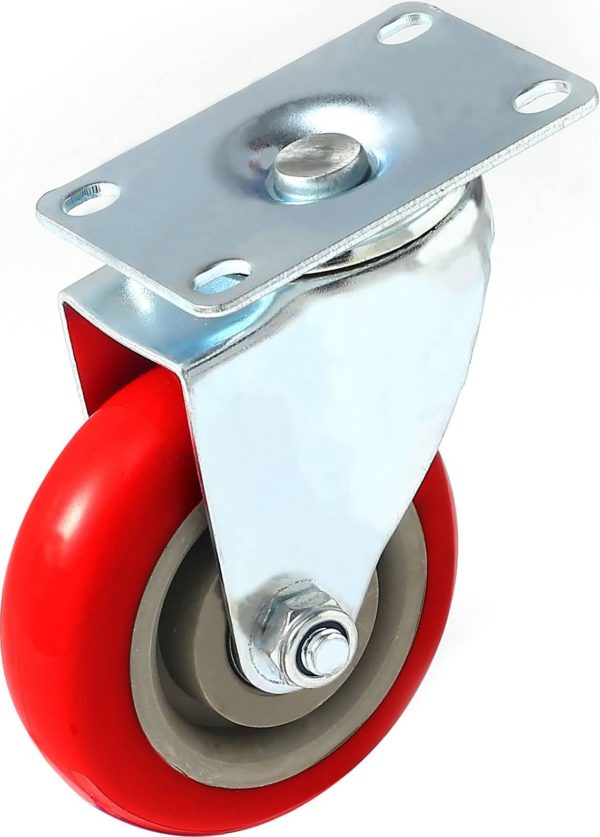 WHEEL MATERIALS AND PERFORMANCE: Heavy duty casters made of polyurethane wheels. COLOR: Red. Ball bearings: Double ball bearings. Premium Caster wheels are made of high quality polyurethane wheels with strong abrasion resistance, silent shock absorber, wearproof, no drag marks and enhance the impact resistance of the whole caster.
