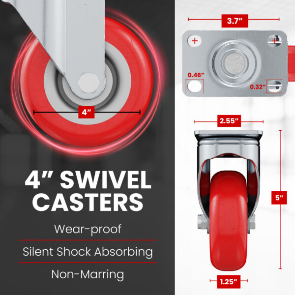 - Caster Wheel Diameter: 4″ (101mm)
