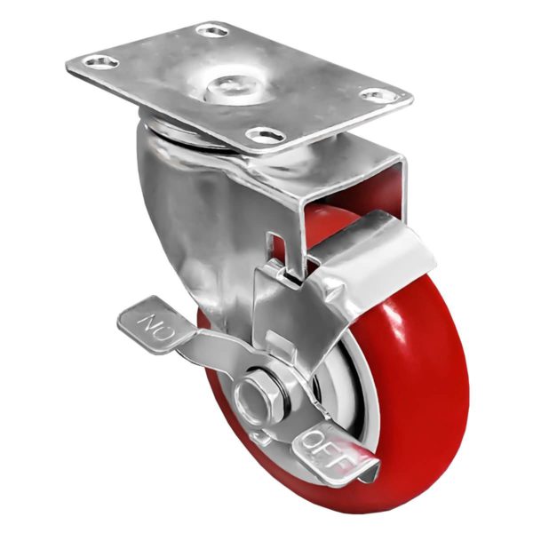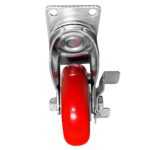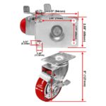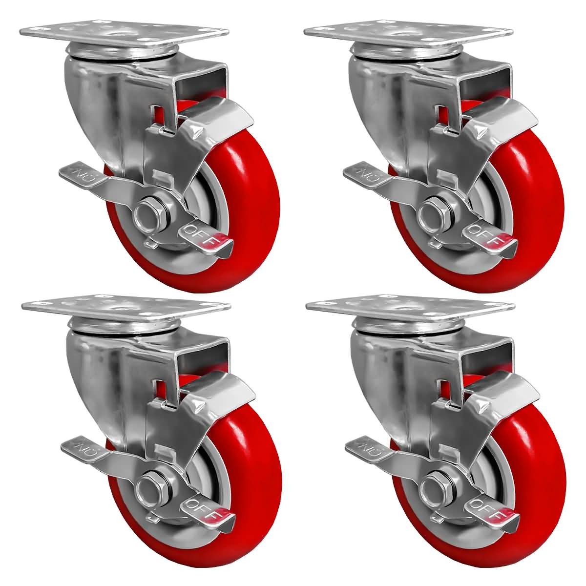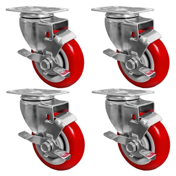 4 Pack 4 inch Red PU Swivel Caster With Side Brake