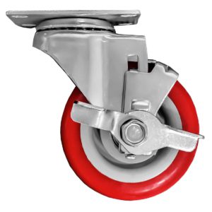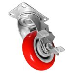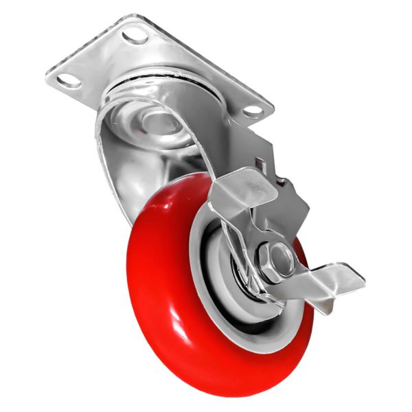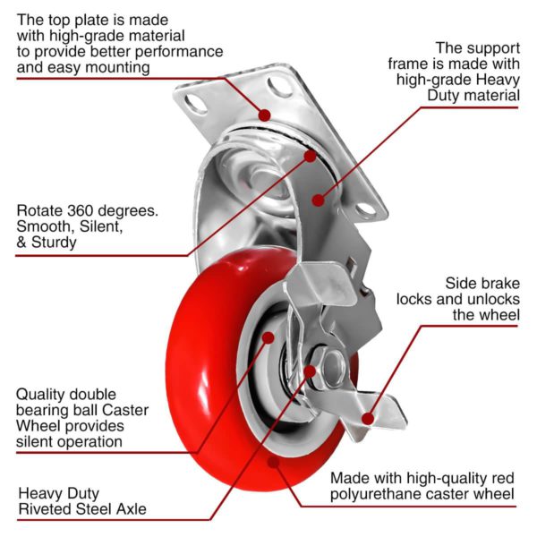 WHEEL MATERIALS AND PERFORMANCE: Heavy duty casters made of polyurethane wheels. COLOR: Red. Ball bearings: Double ball bearings.