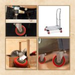 CASTER WHEEL SIZE: Caster Wheel Diameter: 4″ (101mm). Caster Wheel Width: 1.25″ (32mm). Overall Height: 5″ (127mm). Caster Wheel Color: Red. Ball bearings: Double ball bearings. Capacity: 300lbs each polyurethane caster wheel.