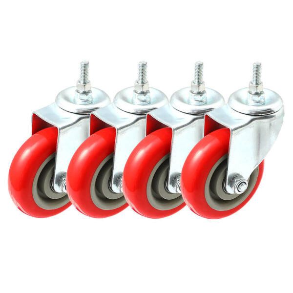 4 Pack 4 inch Red PU Swivel Stem Caster No Brake
