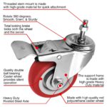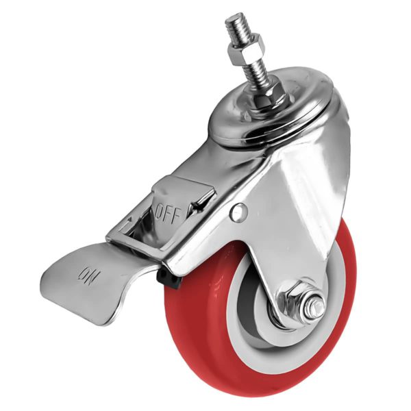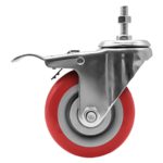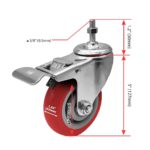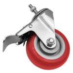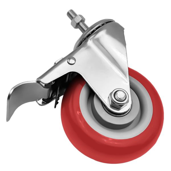 4 Pack 4 inch Red PU Swivel Stem Caster With Front Brake