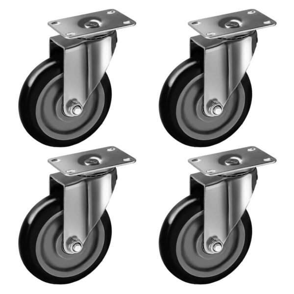 4 Pack 5 inch Black PU Swivel Caster No Brake